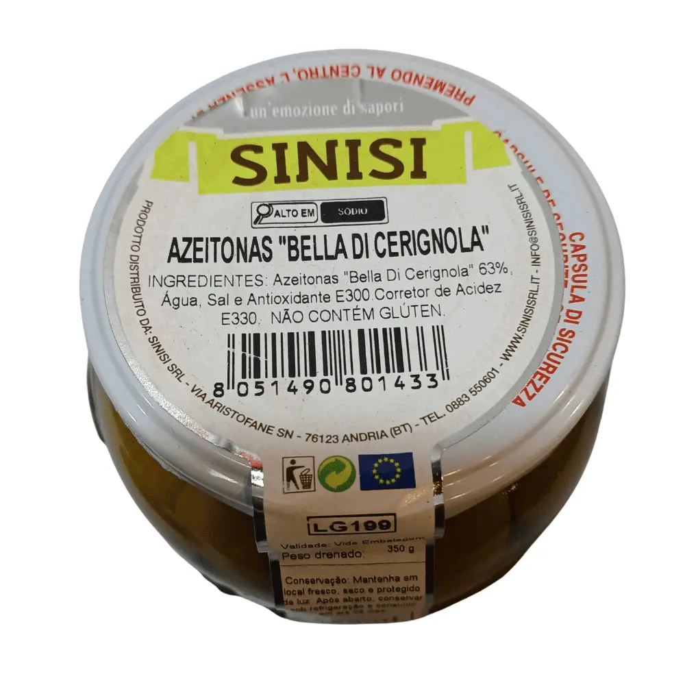 As azeitonas verdes Bella Ceringnola da marca Sinisi são uma escolha ideal para os amantes da gastronomia que buscam qualidade e sabor em cada porção.
