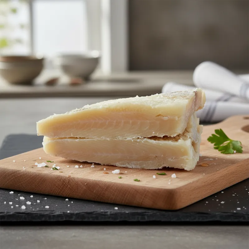 Este tipo de bacalhau é considerado o mais nobre do mundo, com sabor suave e textura que se desfaz em lascas.