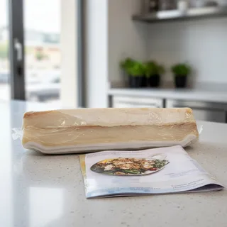 Características: É o bacalhau mais nobre, com postas altas e largas, coloração palha uniforme e sabor inconfundível. Cortado em File.