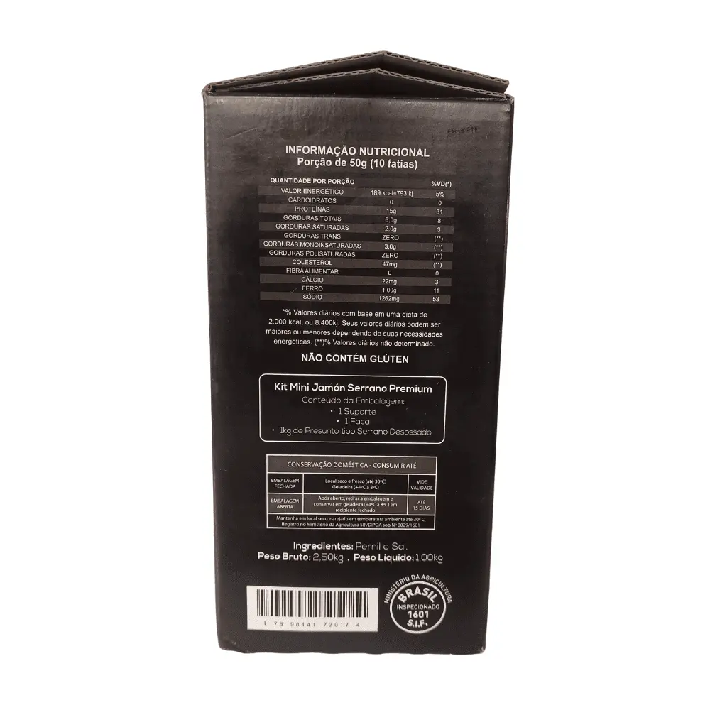 Kit Mini Presunto Cru Tipo Serrano Premium 18Meses Salamanca 1Kg – com Suporte de mármore e Faca incluso!